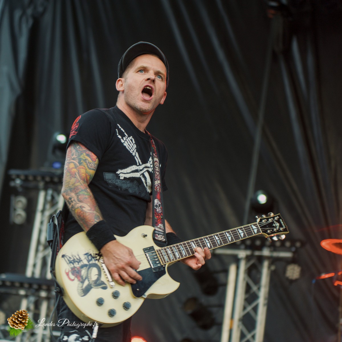 - L’Esprit Festival : Saisir les contrastes entre la lumière du jour et l’ambiance sombre et électrique de la scène, soulignant le caractère sans concession du show.