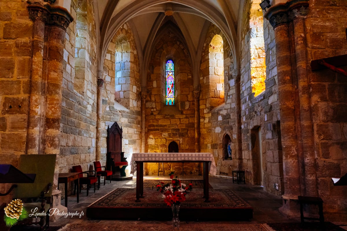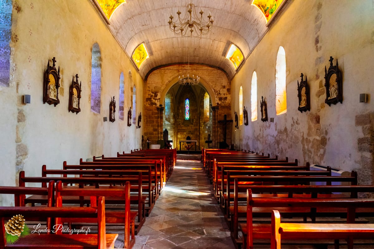- Les Galeries en Bois : L’intĂ©rieur de la nef est caractĂ©risĂ© par la prĂ©sence de galeries en bois traditionnelles, qui courent sur les cĂ´tĂ©s. Ces tribunes, signatures des Ă©glises du Sud-Ouest, confèrent Ă l’espace une ambiance chaleureuse et rustique, tout en augmentant la capacitĂ© d’accueil.