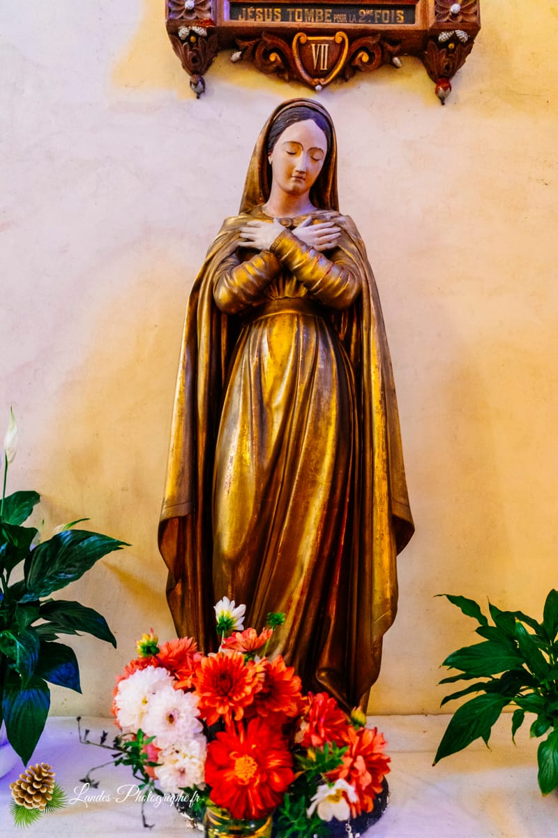 Bien que l’Ă©glise ait Ă©tĂ© plusieurs fois reconstruite et remaniĂ©e (notamment aux XVIIᵉ et XIXᵉ siècles), elle conserve un cachet et des Ă©lĂ©ments typiques de l’architecture religieuse landaise :