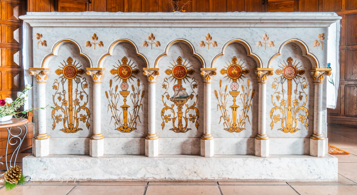 • LuminositĂ© : Les vitraux et la configuration de l’Ă©glise sont pensĂ©s pour laisser passer une lumière abondante, crĂ©ant une atmosphère de sĂ©rĂ©nitĂ©.