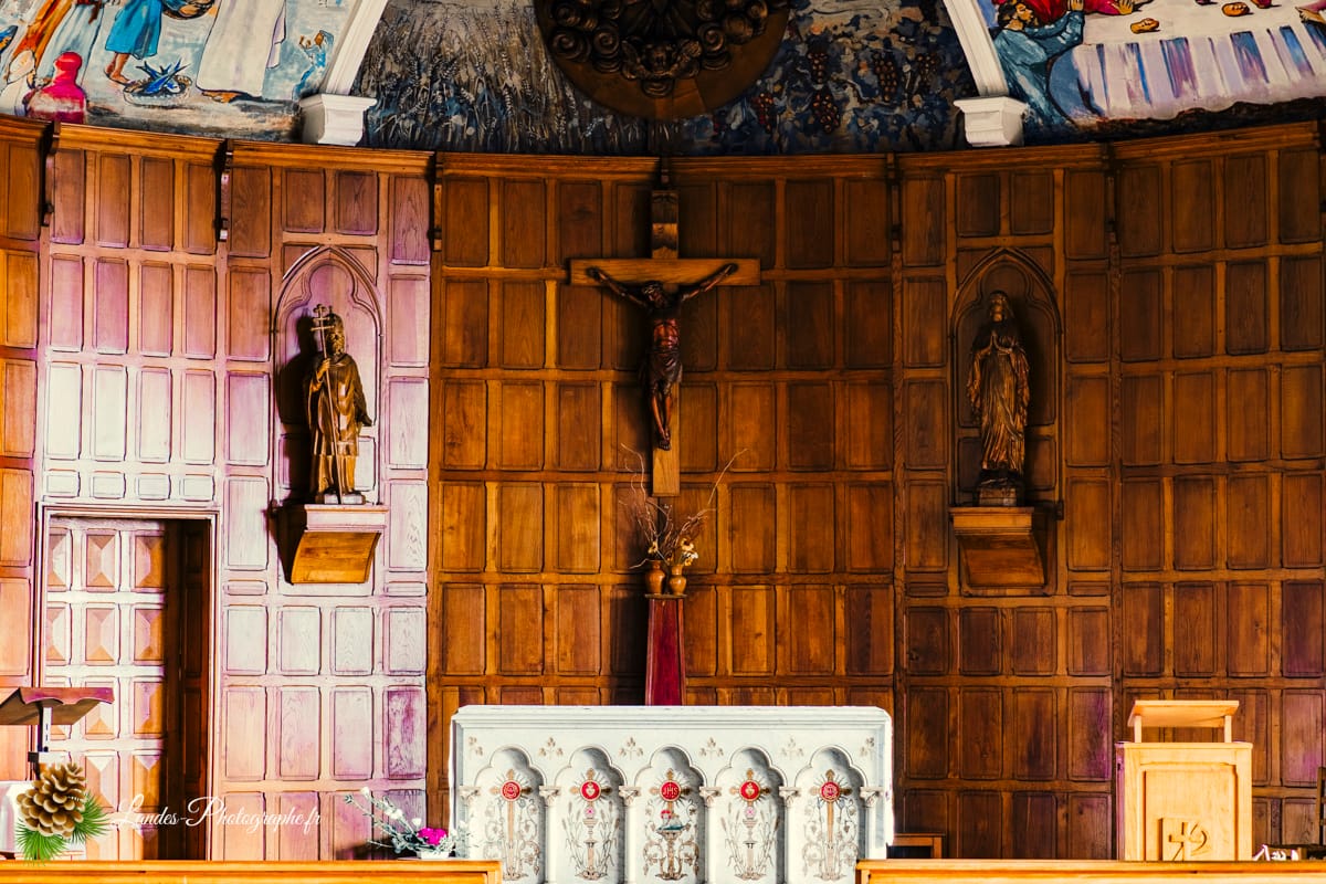 • Les Galeries en Bois : Comme dans beaucoup d’Ă©glises du Sud-Ouest, l’intĂ©rieur de la nef est enrichi par les galeries en bois traditionnelles. Ces structures confèrent un caractère chaleureux et local Ă  l’Ă©difice, tout en Ă©voquant le patrimoine architectural de la rĂ©gion.