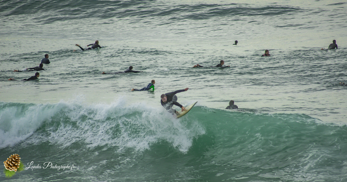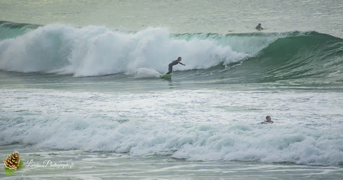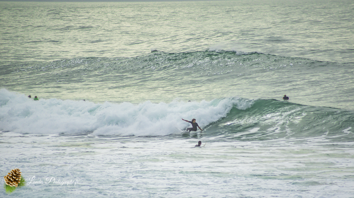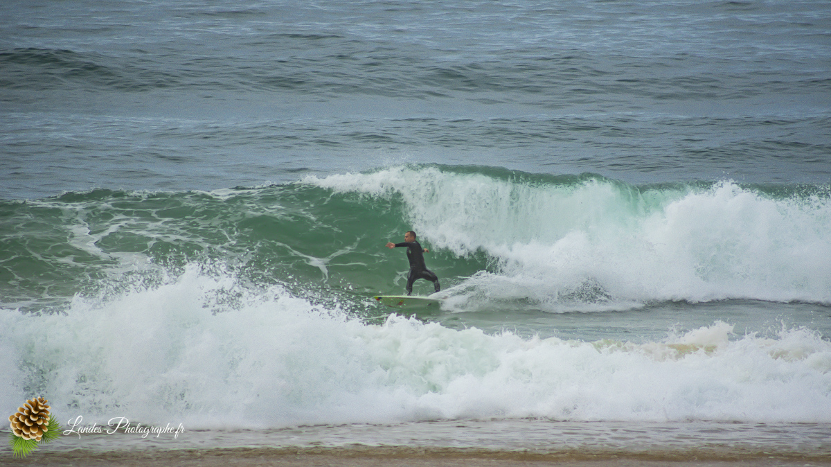 En ce 22 octobre 2025, la côte landaise nous a offert l’un de ses plus beaux visages. Je me suis rendu sur la Plage du Prévent à Capbreton pour immortaliser une session de surf marquée par une lumière dorée et des conditions typiques de notre « été indien ».