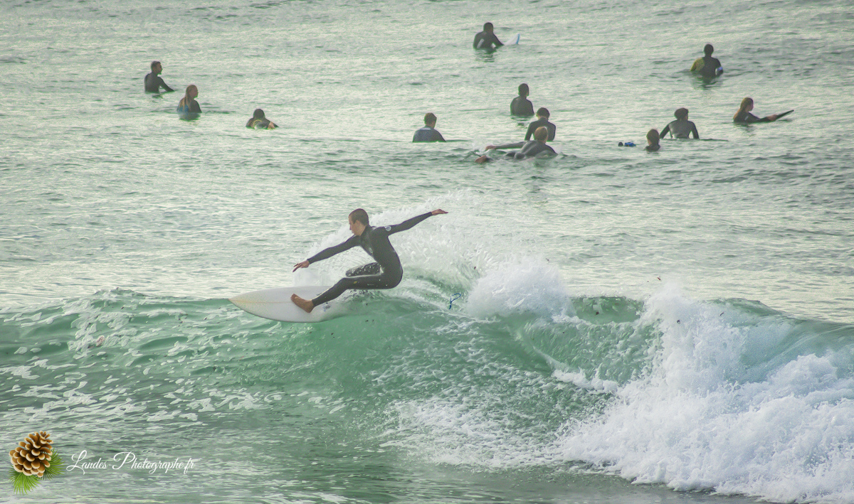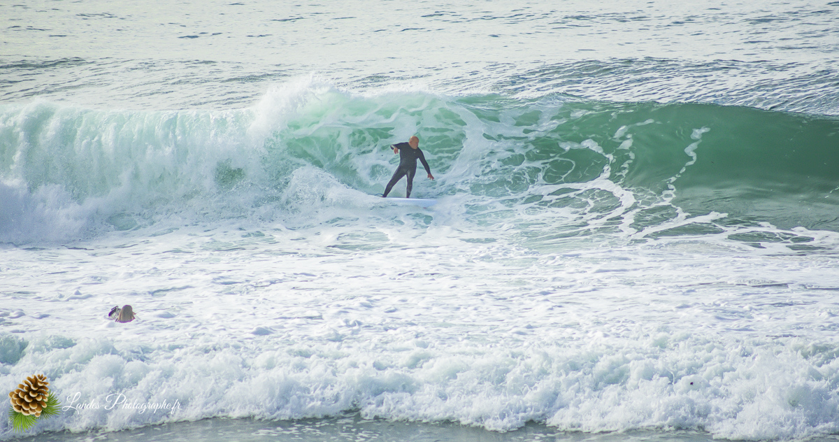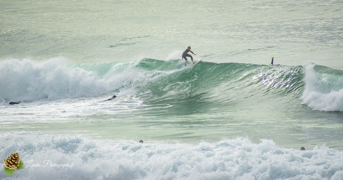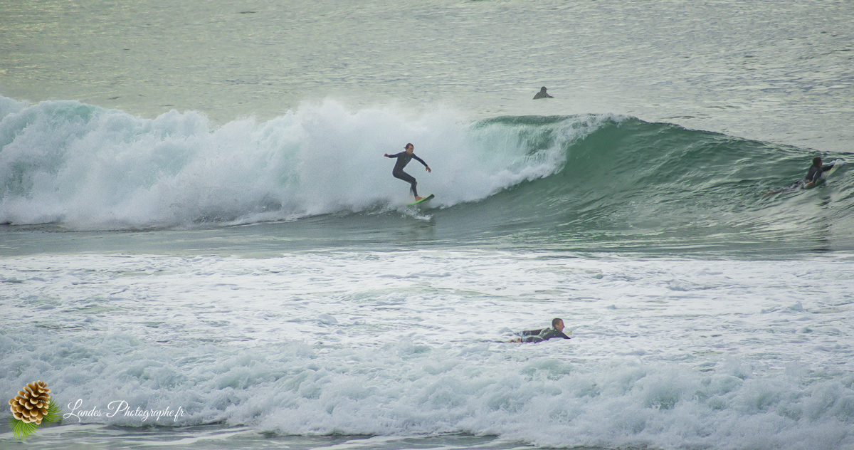 En ce 22 octobre 2025, la côte landaise nous a offert l’un de ses plus beaux visages. Je me suis rendu sur la Plage du Prévent à Capbreton pour immortaliser une session de surf marquée par une lumière dorée et des conditions typiques de notre « été indien ».