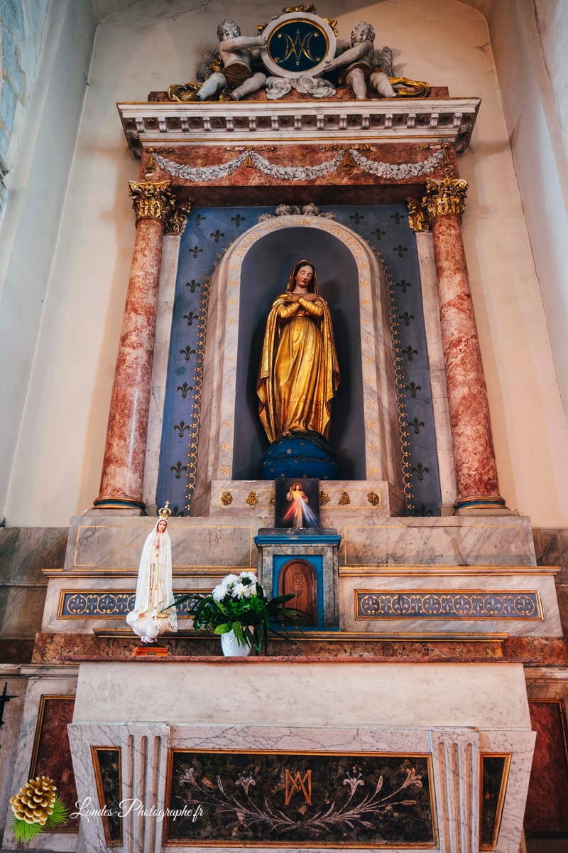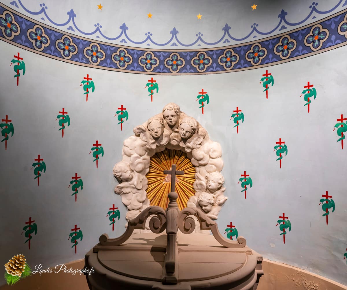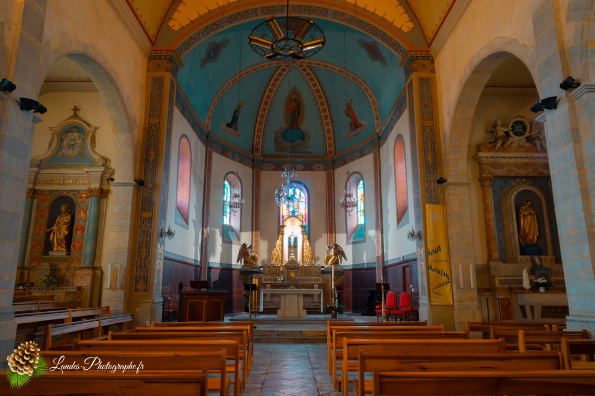 • La Nef : L’édifice est structuré autour d’une nef unique, généralement sobre dans l’esprit des églises de Gascogne.