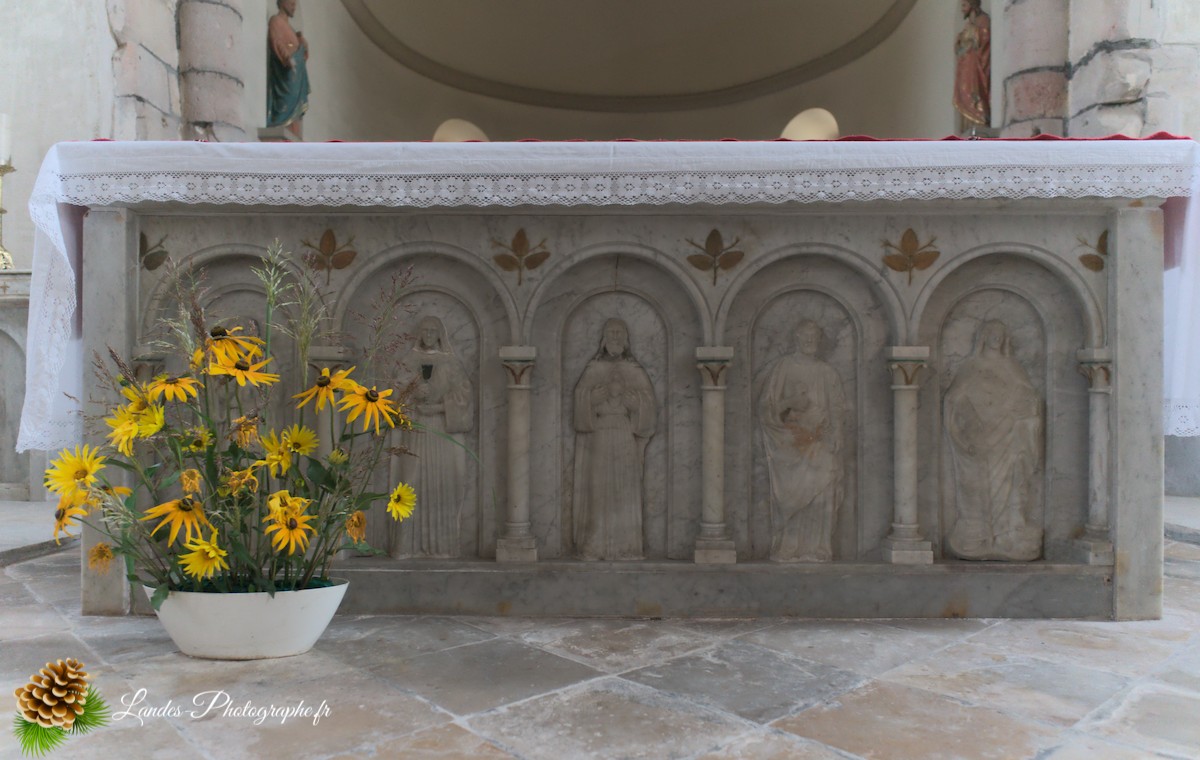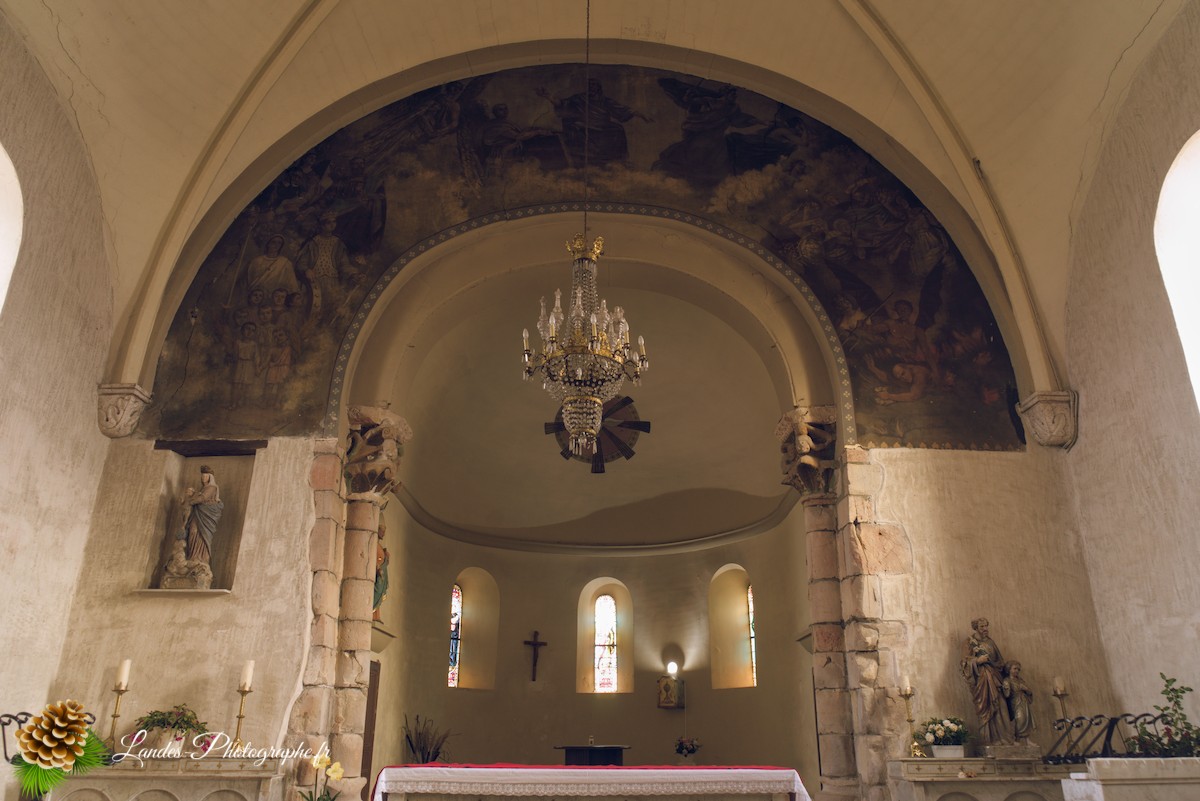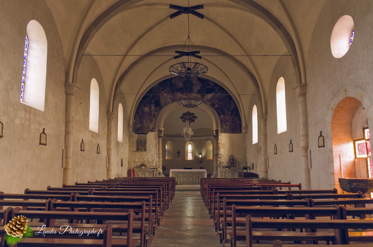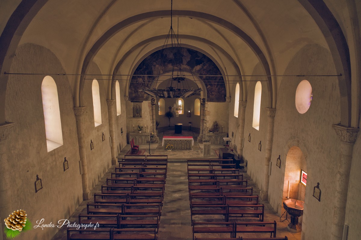 • Les Galeries en Bois : L’intérieur est caractérisé par la présence des galeries en bois traditionnelles, qui courent le long de la nef. Ces tribunes, autrefois réservées aux hommes, augmentent la capacité d’accueil et ajoutent un cachet chaleureux et unique, signature des églises du Sud-Ouest.