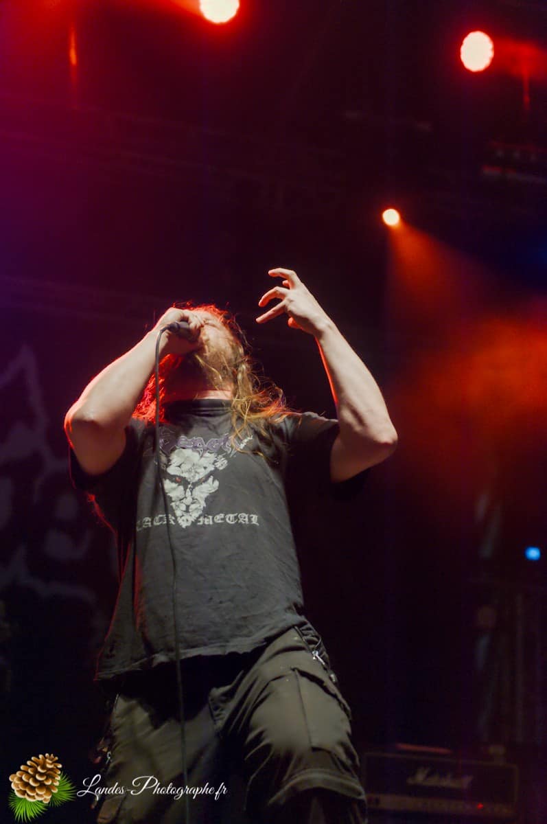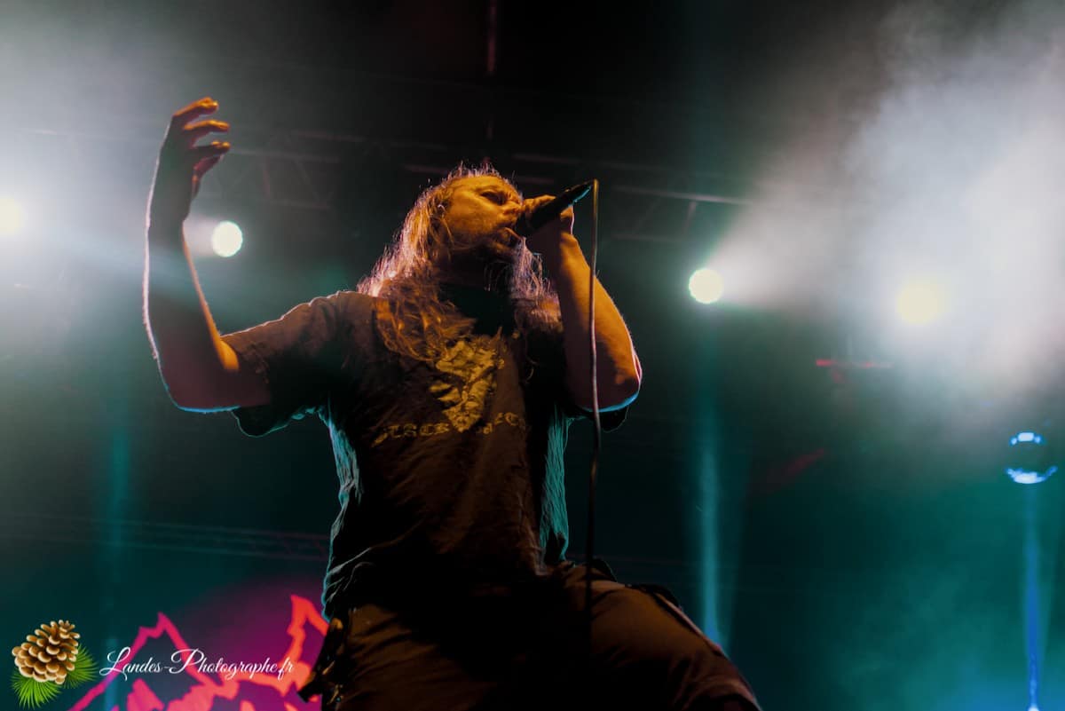 Les contrastes entre l’obscuritĂ© de la scĂšne et les Ă©clairs de lumiĂšre ont permis de souligner la force de leur Death Metal, tout en capturant les sourires d’un groupe visiblement ravi de partager ce moment de chaos avec le public breton.