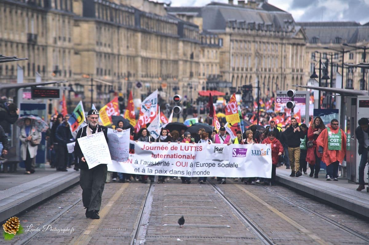 Ce reportage s’inscrivait dans un contexte national de forte mobilisation sociale, avec des revendications claires contre l’austérité et en faveur de l’emploi et du progrès social. Mon rôle de photographe de presse était de documenter, avec rigueur et objectivité, l’énergie du cortège, l’ambiance de cette journée syndicale, et de capter les moments et les visages emblématiques de la contestation bordelaise.