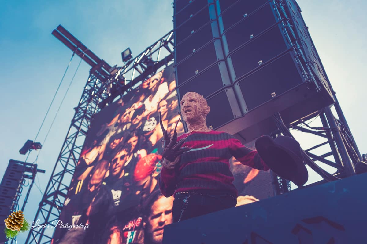 S’il y a un groupe qui transforme la scĂšne en un vĂ©ritable film d’horreur survoltĂ©, c’est bien Banane Metalik. Lors du Hellfest 2019, le groupe français a littĂ©ralement envahi la Warzone avec son univers unique et dĂ©jantĂ© : le « Gore ‘n’ Roll ».