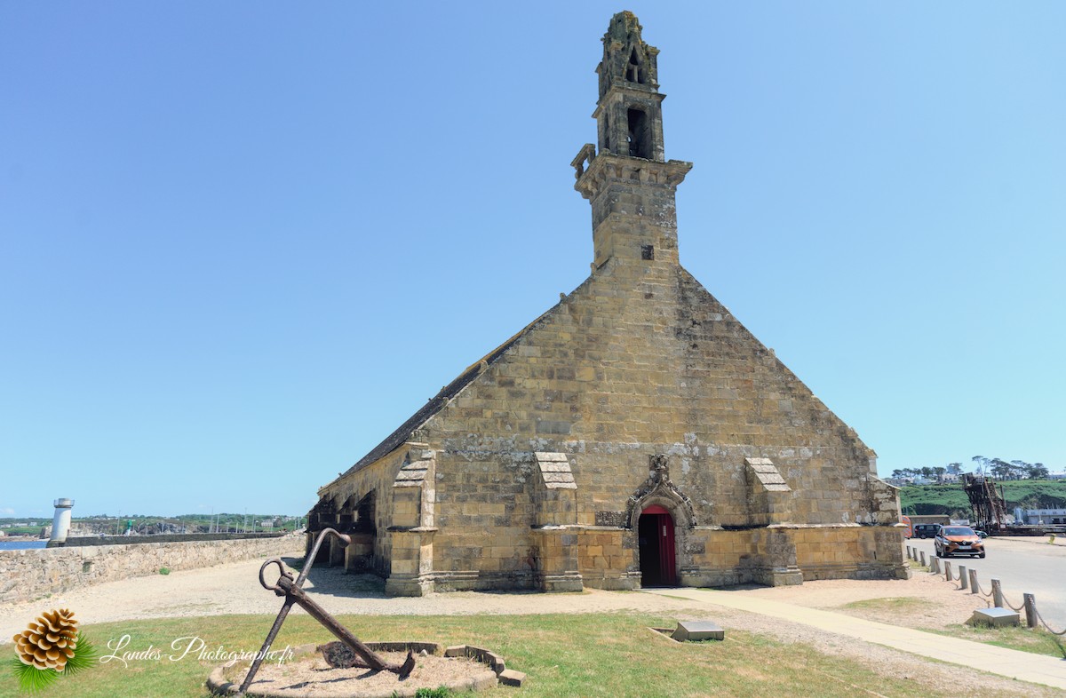 Bâtie avec des pierres locales (kersantite et microdiorite), elle fait face à la mer et se dresse comme un phare spirituel à côté du fascinant cimetière à bateaux, achevant de composer un tableau d’une beauté mélancolique et puissante.