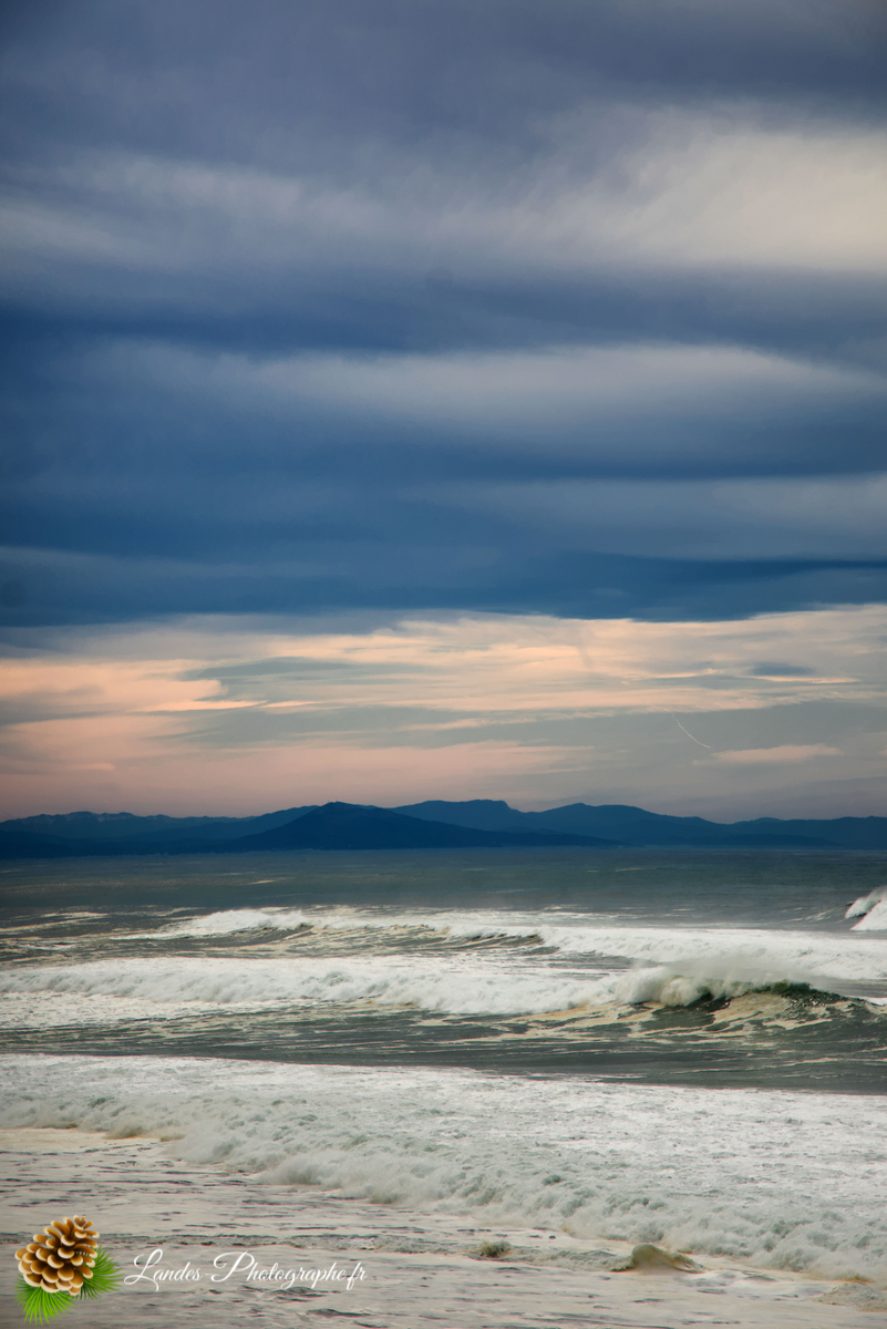 - Le Panorama Pyrénéen : Saisir l’instant rare où la chaîne des Pyrénées se dessine en arrière-plan des vagues, créant un contraste saisissant entre terre et mer.