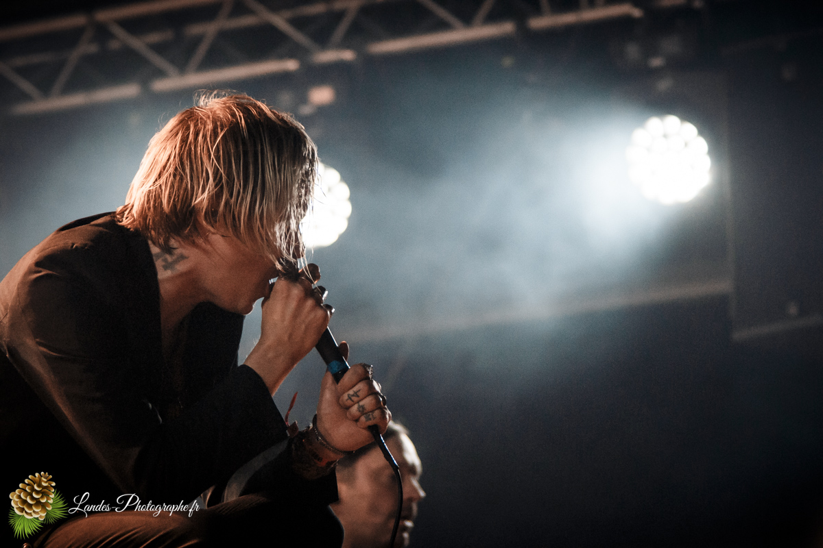 Ce concert fut un défi et une opportunité visuelle. La lumière agressive et très contrastée, majoritairement en contre-jour, a créé une atmosphère dramatique et crue. Loin de masquer l’action, elle a amplifié la puissance scénique du groupe, soulignant les silhouettes dynamiques des musiciens et l’énergie brute dégagée par la performance. J’ai cherché à capturer cette violence esthétique pour retranscrire la rage et l’urgence de leur musique.