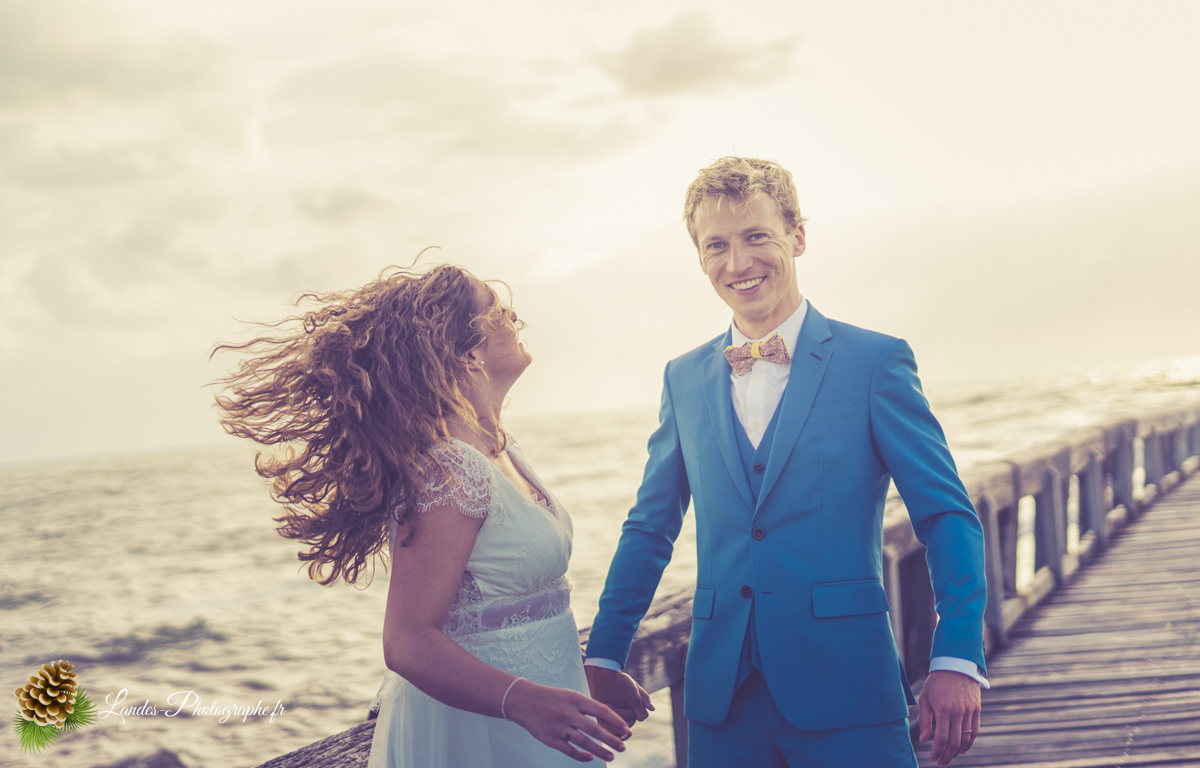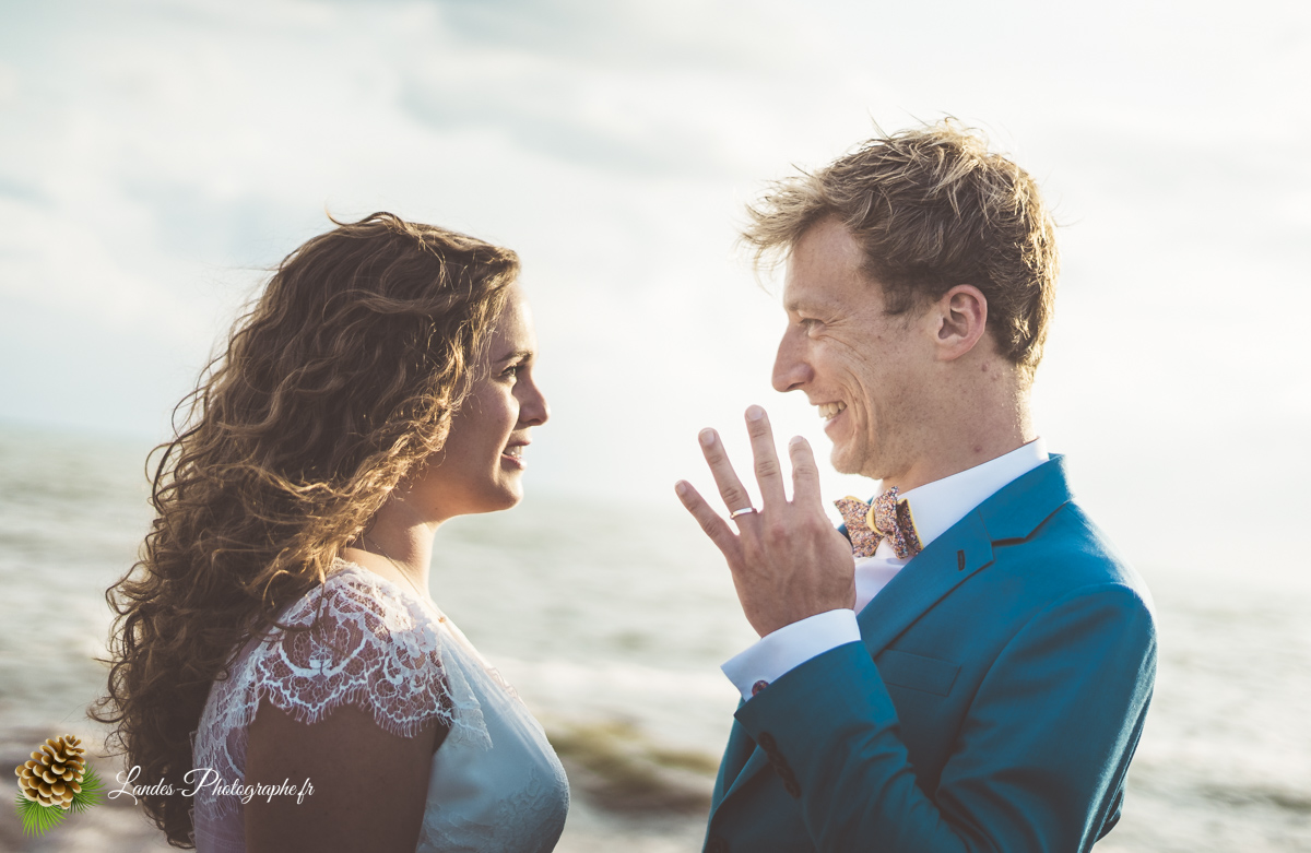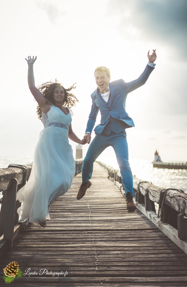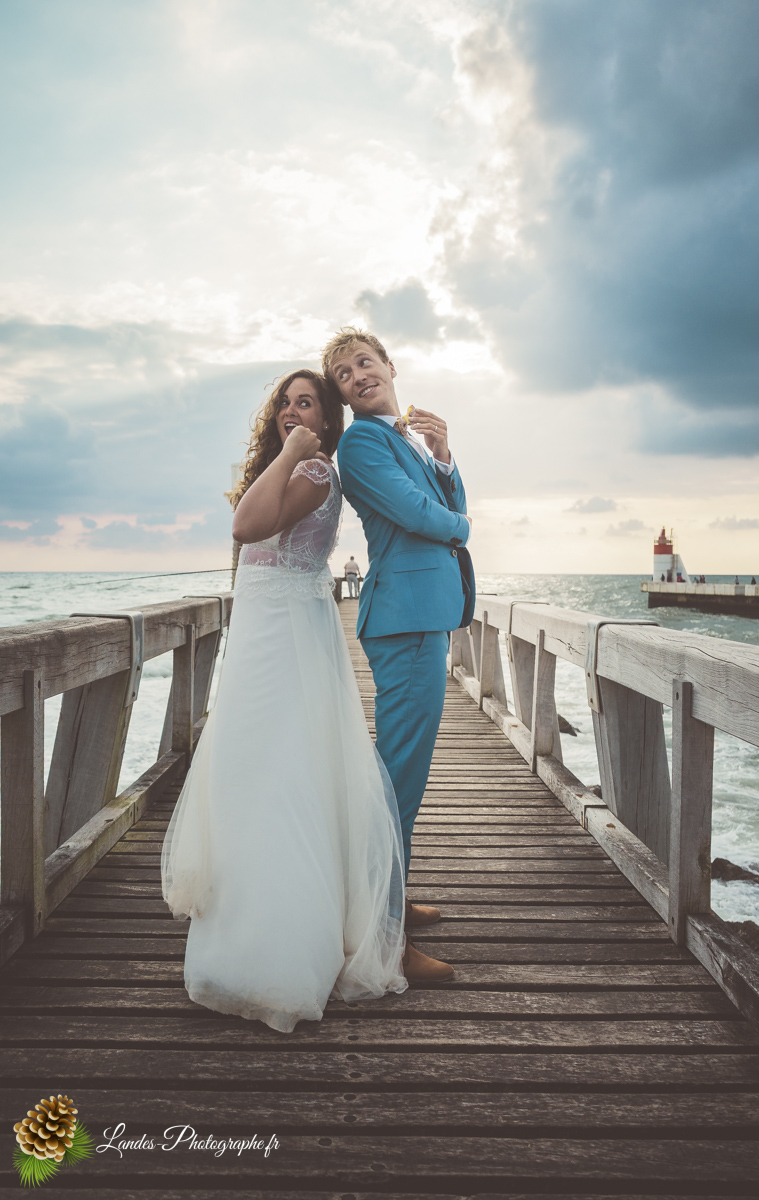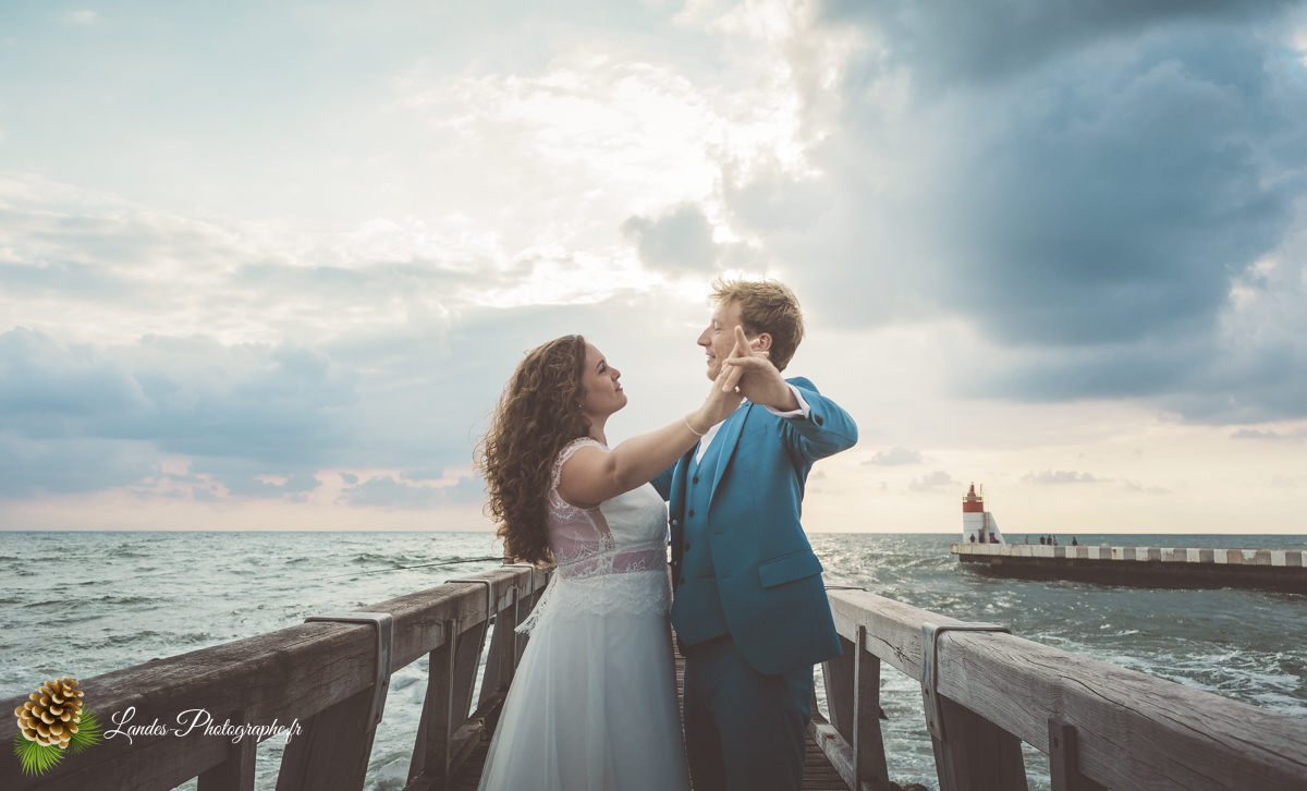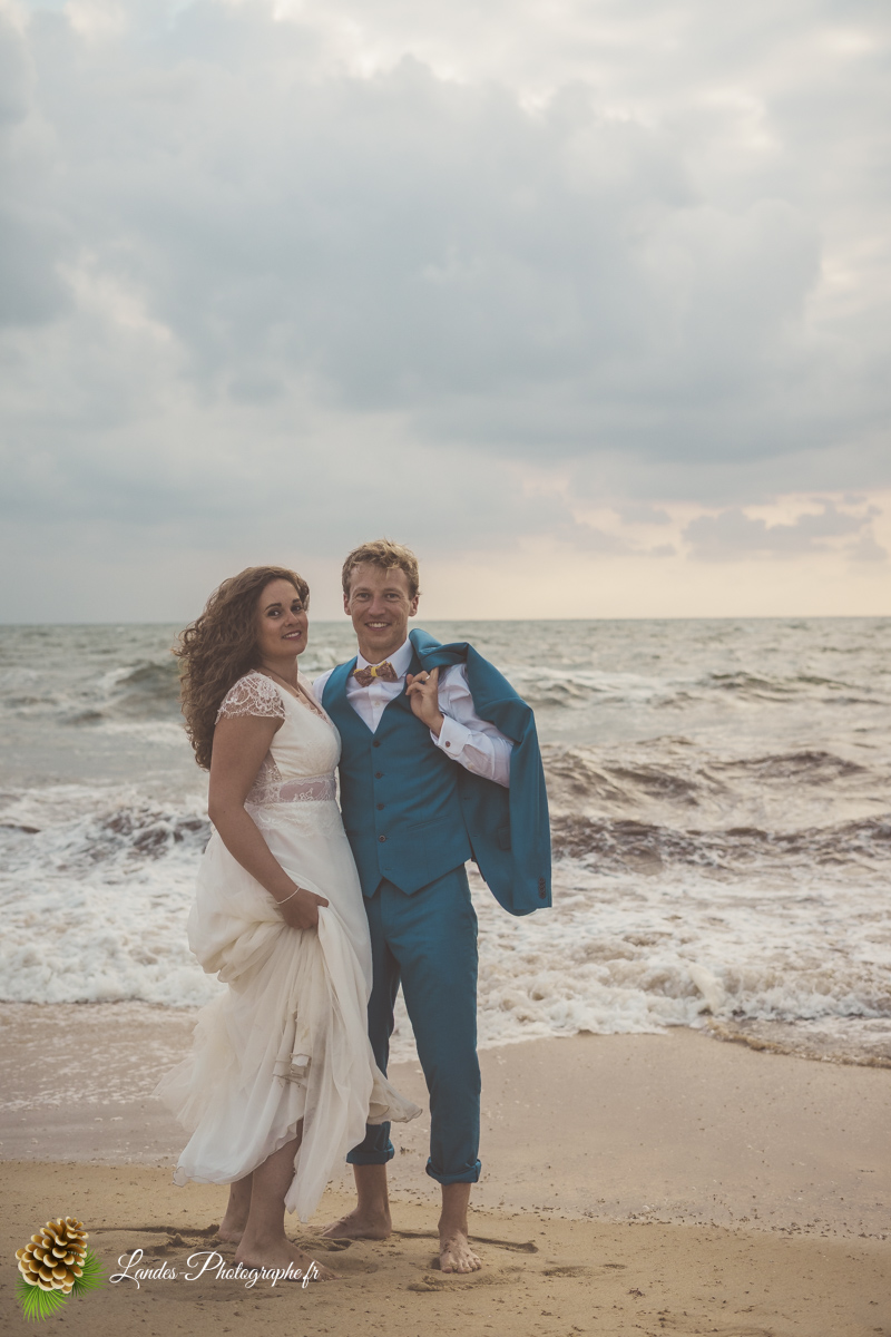 - L’Élégance face à l’Océan : Saisir le contraste saisissant entre la dentelle de la robe de mariée et la puissance des vagues landaises, créant des compositions poétiques et dynamiques.