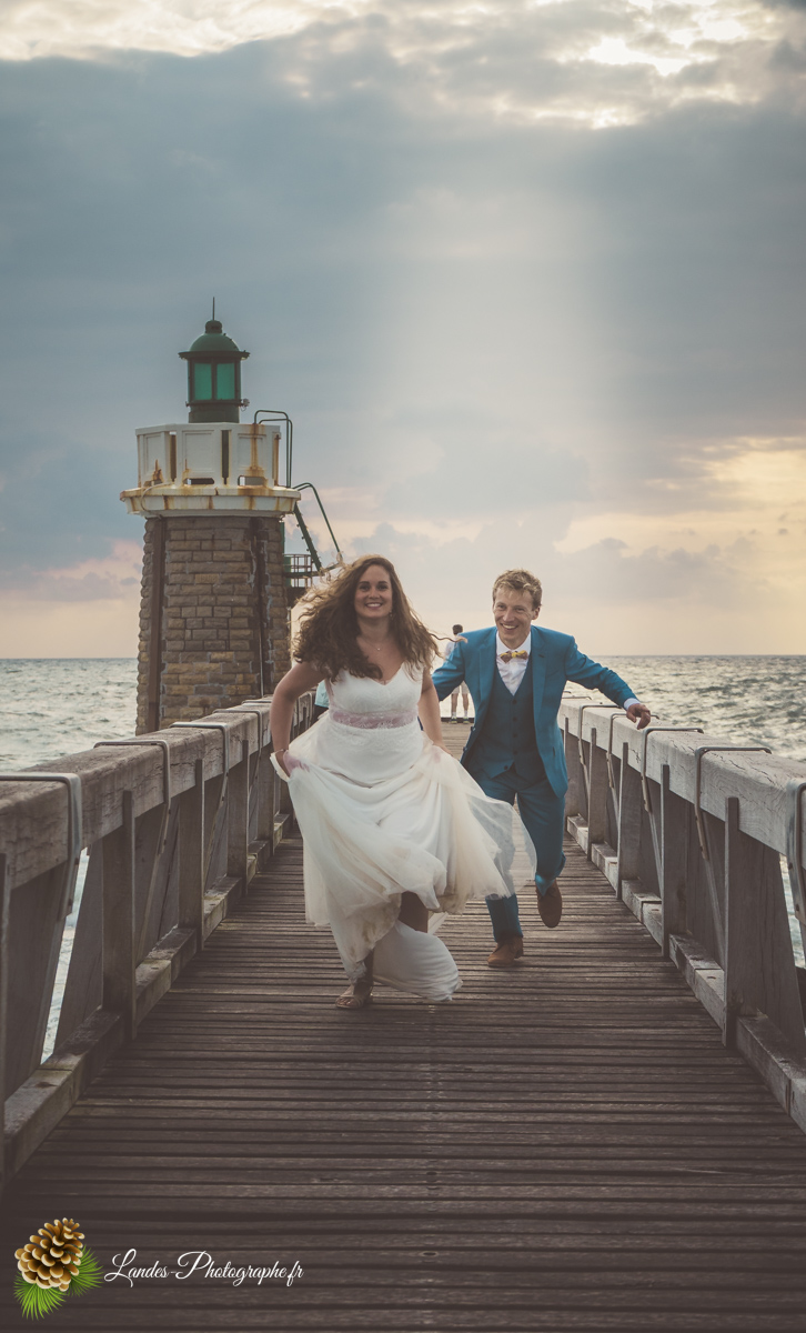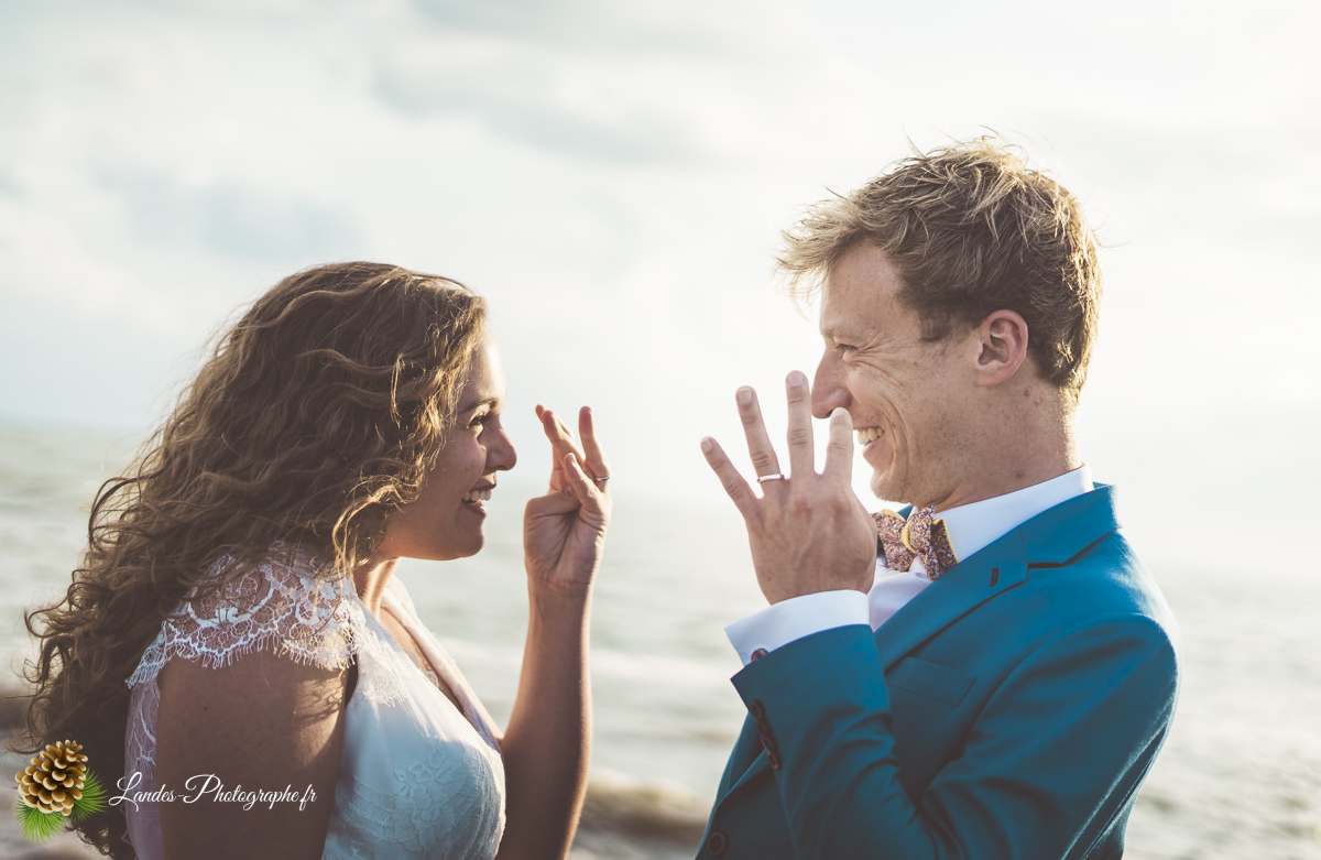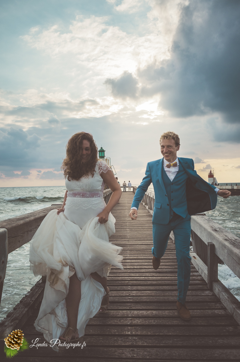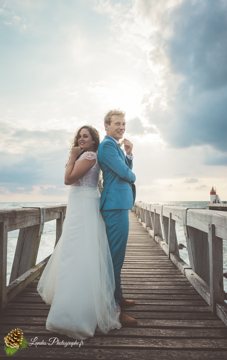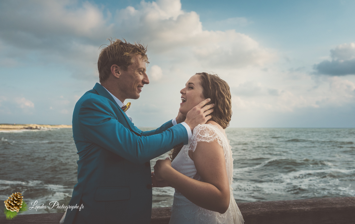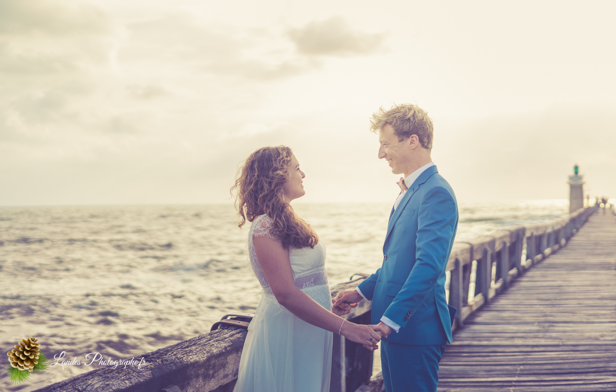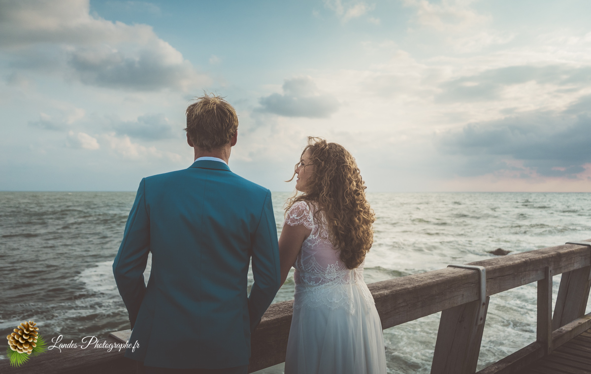 - L’Élégance face à l’Océan : Saisir le contraste saisissant entre la dentelle de la robe de mariée et la puissance des vagues landaises, créant des compositions poétiques et dynamiques.