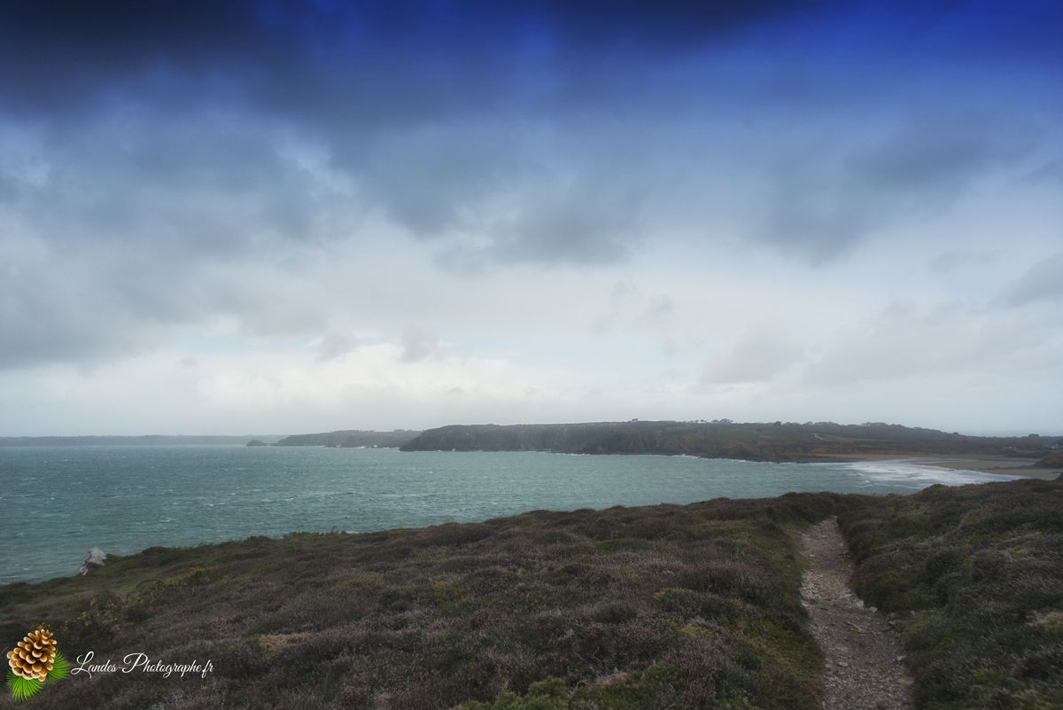 - La courbe parfaite de l’anse : Saisir le dessin de la baie depuis les hauteurs du Kerloc’h ou du Grand Gouin, révélant la rondeur protectrice de la plage face au large.